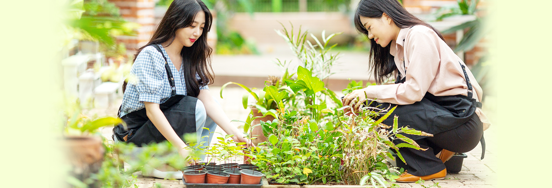 생활 수준과 삶의 질이 높아지면서 “반려식물”, “플랜테리어”, “게릴라가드닝”과 같은 전에는 들어 보지 못했던 신조어 등을 뉴스나 SNS를 통해 심심치 않게 접할 수 있다. 스마트그린융합학부(플라워·가드닝전공)는 이러한 사회적 분위기에 발맞춰 플로리스트 및 가든 전문가를 양성합니다.