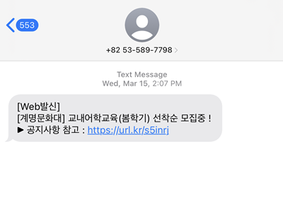 [보증금 환급 내용 문자확인] | [국제교육원 홈페이지 공지사항 확인] | |