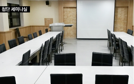 학과 및 동아리 세미나를 위한 세미나실로 전자교탁, 빔프로젝트, 전동스크린, 멀티미디어시스템, 냉난방 시스템, 초고속 인터넷 완비