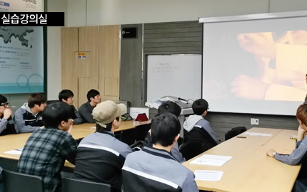 실습수업을 위한 강의실로 전자교탁, 빔프로젝트, 전동스크린, 멀티미디어시스템, 냉난방 시스템, 초고속 인터넷을 구비하고 있음