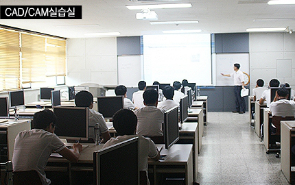 CAD/CAM 실습실은 전자교탁, 빔프로젝트, 전동스크린, 멀티미디어시스템, 냉난방시스템, 초고속 인터넷이 설치되어 있으며, Auto CAD, Auto CAD Inventor, Solidwork, CATIA, V-CNC, Power Shaper, Power Mill, ArtCAM 등 소프트웨어를 보유하고 있음.