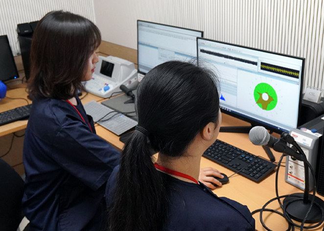 음성장애 수업 시간에 배운 평가 이론을 실제 적용하기 위한 음성검사 실습실