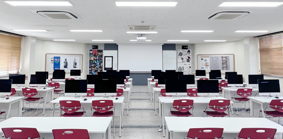 시각디자인과 컴퓨터그래픽 실습강의실로 매킨토시 컴퓨터 및 포토샵, 일러스트레이터, 프리미어, 애프터이펙트, 인디자인 프로그램과 빔프로젝트 등을 갖추고 있다.